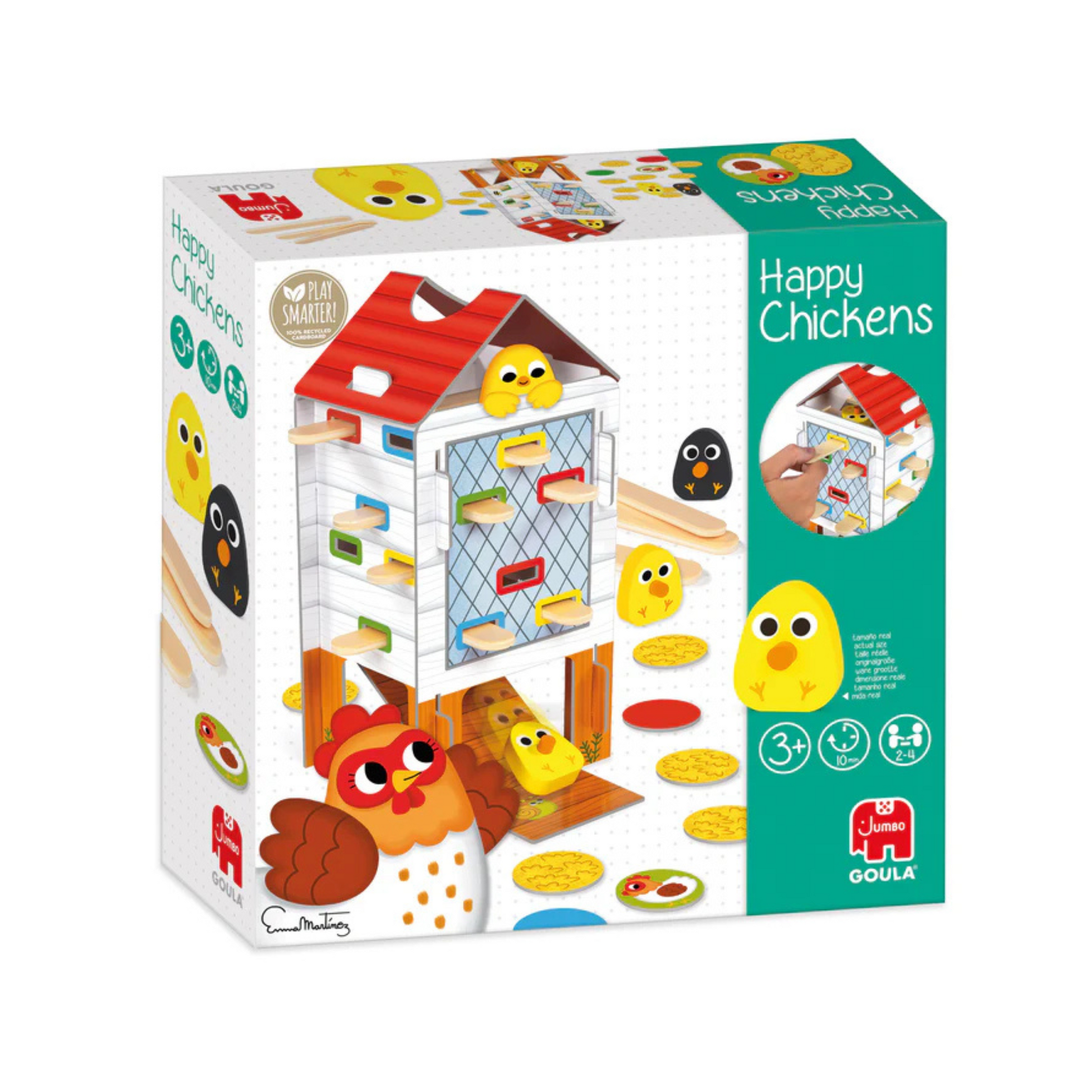 - Happy Chickens: un juego de destreza en el que los jugadores deben colocar las gallinas en sus nidos según el color, ejercitando rapidez, coordinación y reconocimiento visual.